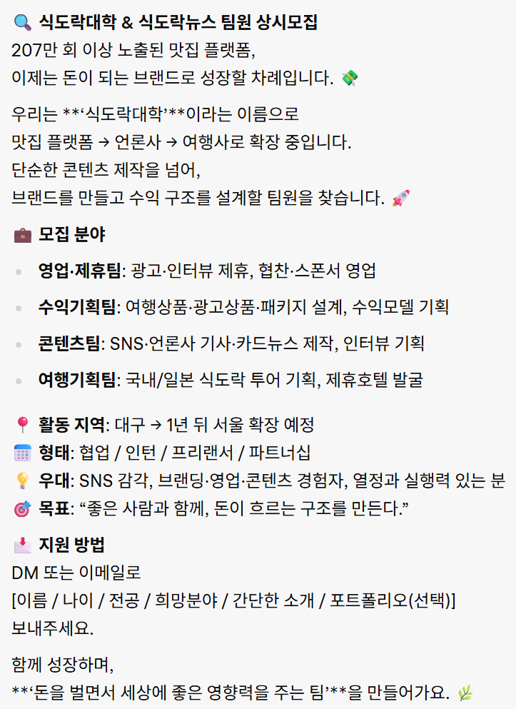 ๐ก ์ฐ๋: SNS ๊ฐ๊ฐ, ๋ธ๋๋ฉ·์์ ·์ฝํ ์ธ ๊ฒฝํ์, ์ด์ ๊ณผ ์คํ๋ ฅ ์๋ ๋ถ